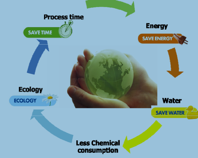 Nuestros procesos ofrecen una reducción de hasta el 95% en consumo de agua, 40% en energía, eliminación completa de químicos en ciertos procesos y mínimo o nulo vertido de efluentes.
